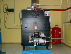 Установить водогрейный котел «Riello» (Италия) мощностью 70 кВт/час с горелкой на отработанных маслах, модели «OMNI» OWBC производства американской компании «EconoHeat inc.»
