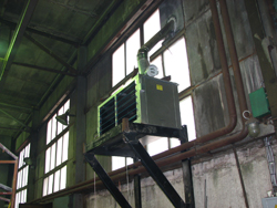 Установить воздухонагреватель на отработанных маслах мощностью 102 кВт/час, модели «OMNI» OWH-350 производства американской компании «EconoHeat inc.» С целью экономии рабочей зоны помещения необходимо изготовить компактные металлоконструкции для установки воздухонагревателя на оптимальной высоте 2,5 м. Под воздухонагревателем установить топливную емкость.